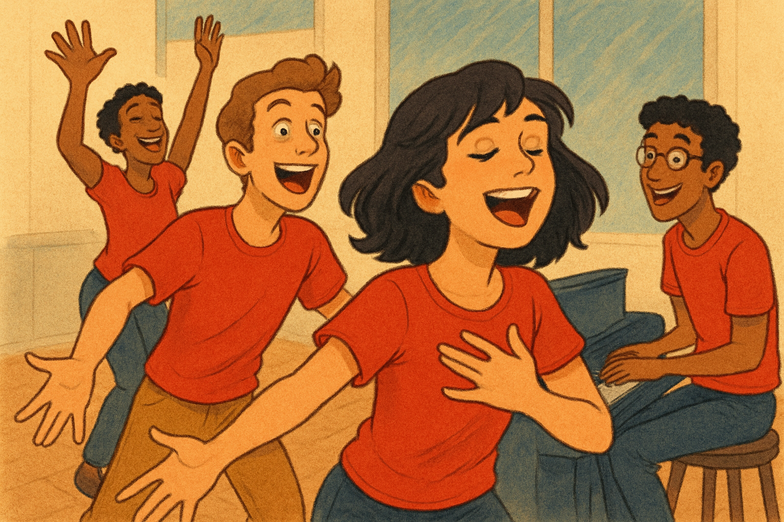 Un cours hebdomadaire de 3 heures animé par des professionnels de la scène – comédiens, chanteurs et danseurs – réunis pour vous accompagner dans une aventure humaine et artistique hors du commun. Un espace où l’exigence artistique rencontre le plaisir de la scène, dans un cadre bienveillant mais ambitieux.